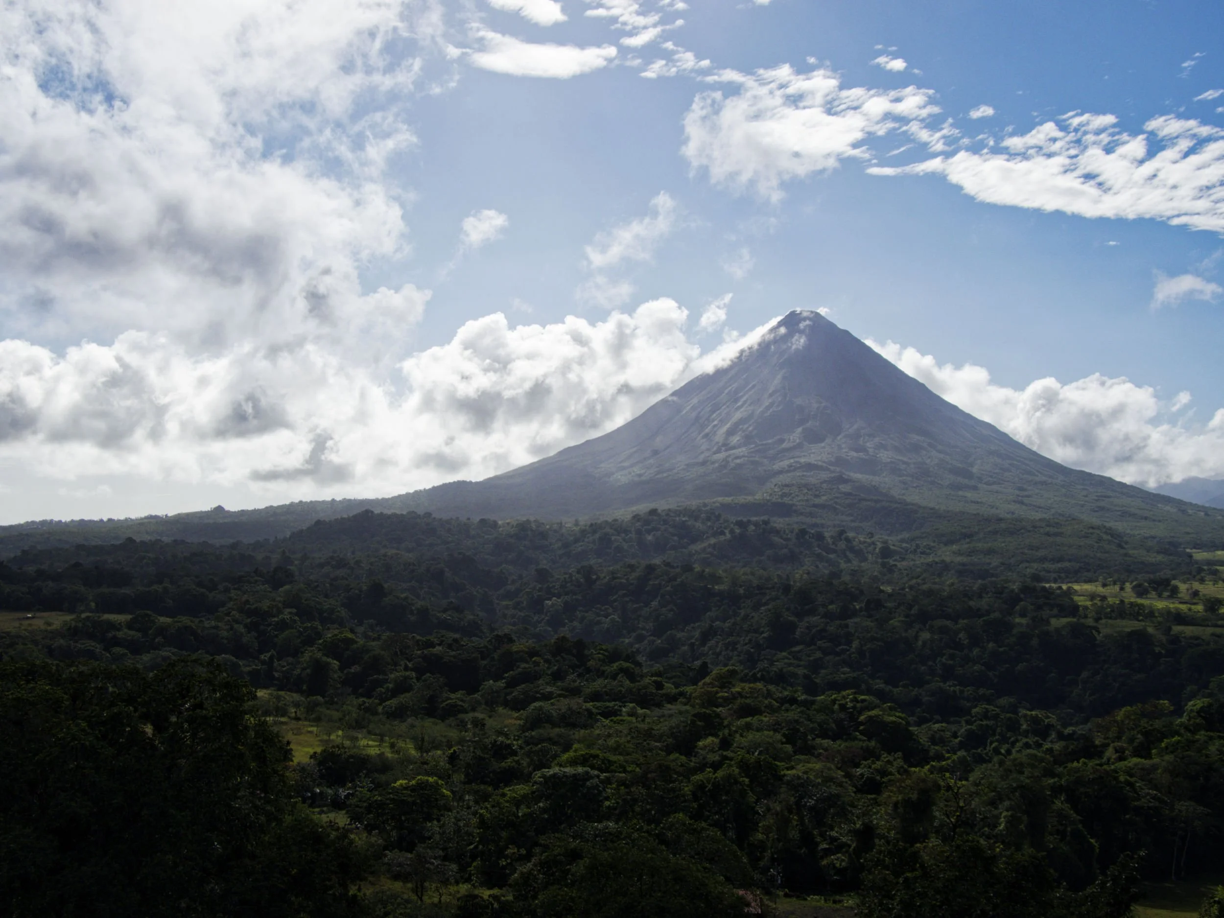 Het dorpje La Fortuna ligt naast de actieve Arenal vulkaan met een hoogte van 1.633 meter. Vanuit het dorp heb je een indrukwekkend uitzicht op de vulkaan waarvan de top vaak in de wolken hangt.