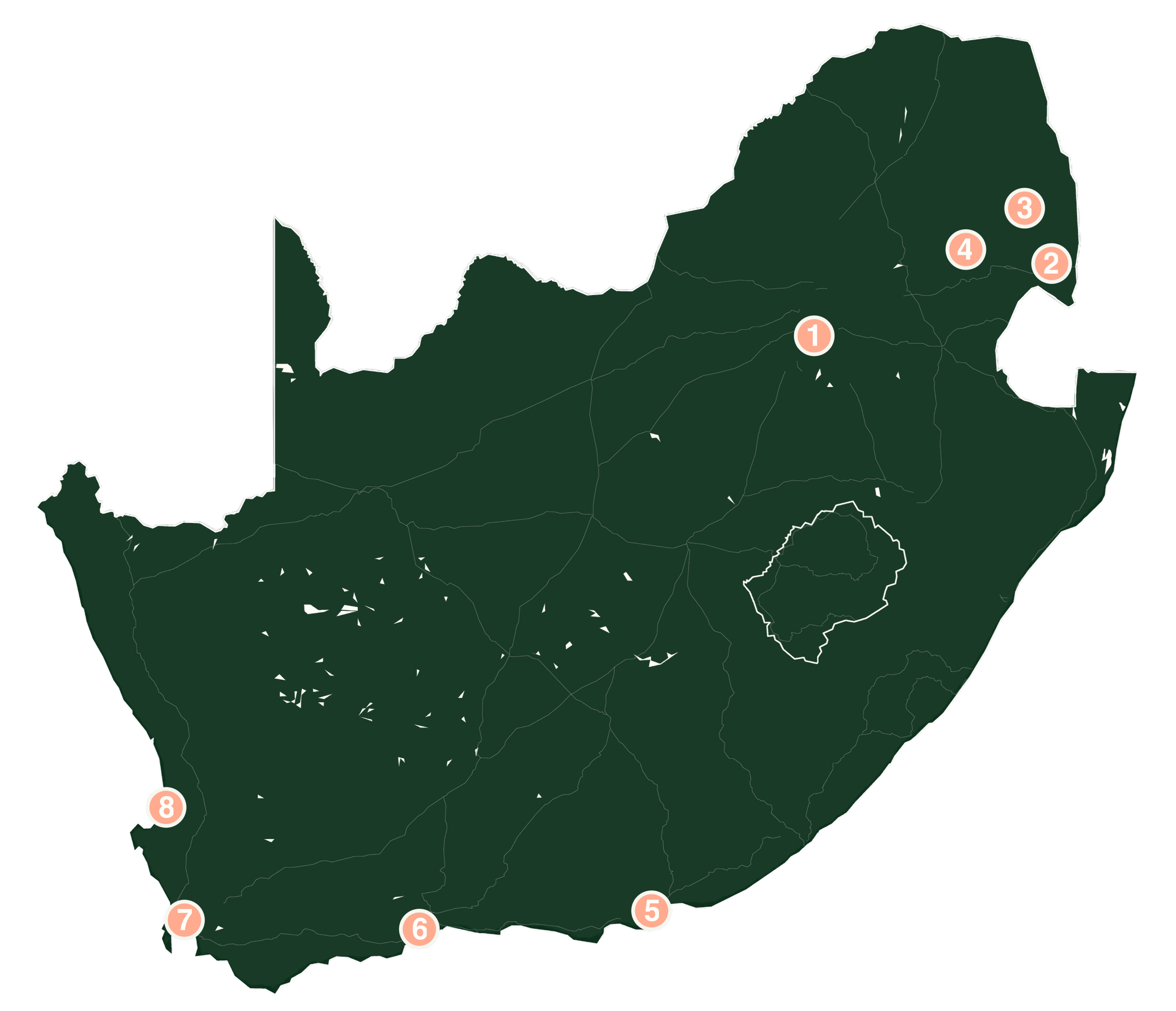 Vooral bekend als Cape Town. Deze bruisende stad heeft naast de Tafelberg nog veel meer te bieden. Duik het stadse leven, geniet van culinaire hoogstandjes en shop souvenirtjes op een van de vele kleurrijke markten. Mocht je nog geen genoeg hebben van de Afrikaanse natuur, dan zijn er heel wat parels te bezoeken.